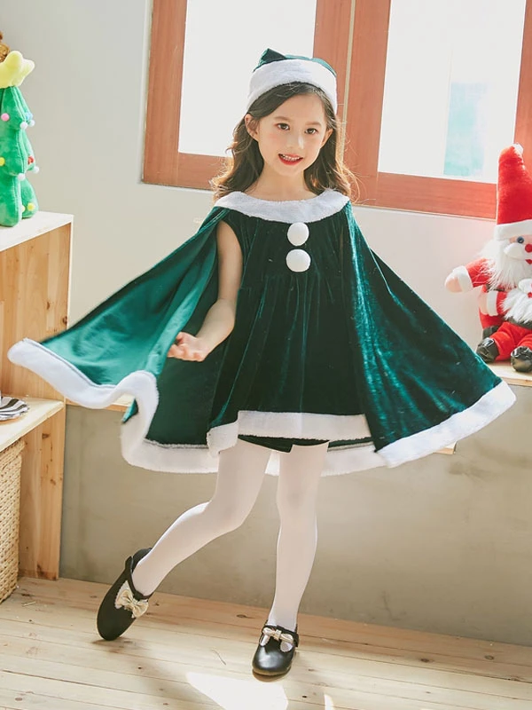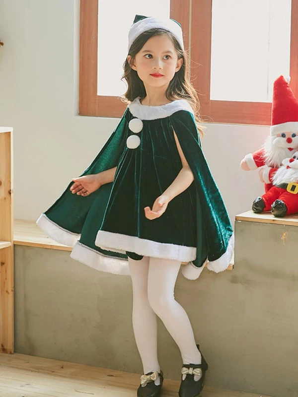 Christmas Green Santa Tree Costume Polyester Fiber Hat Dress Christmas Holidays Costumes Full Set