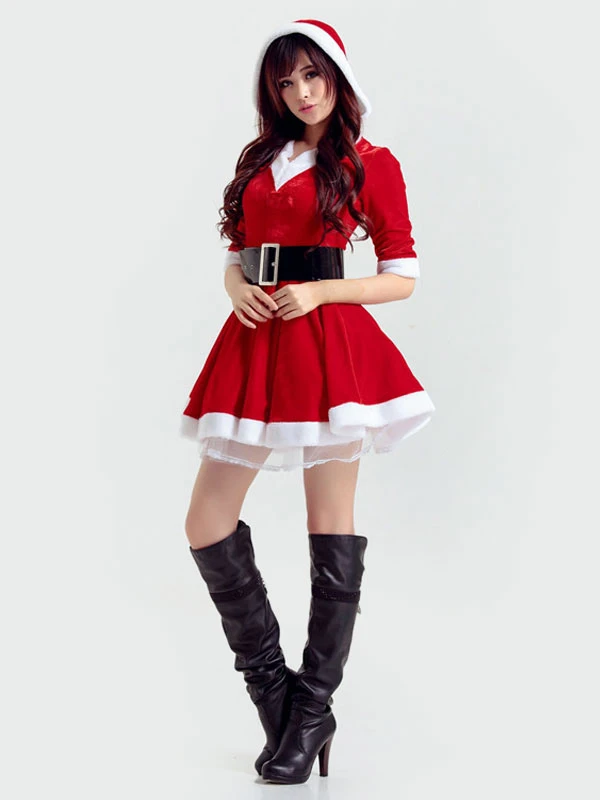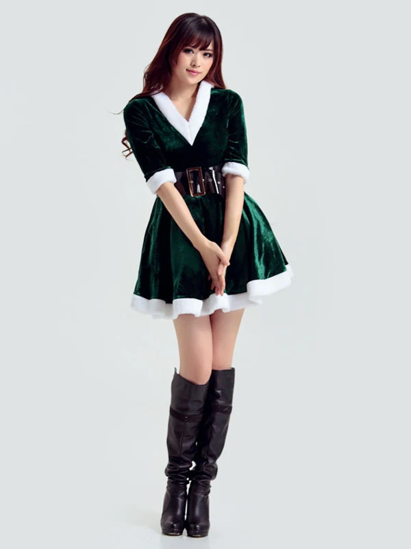 Women’s Christmas Dress White Velour Polyester Christmas Pattern Christmas Holidays Costumes