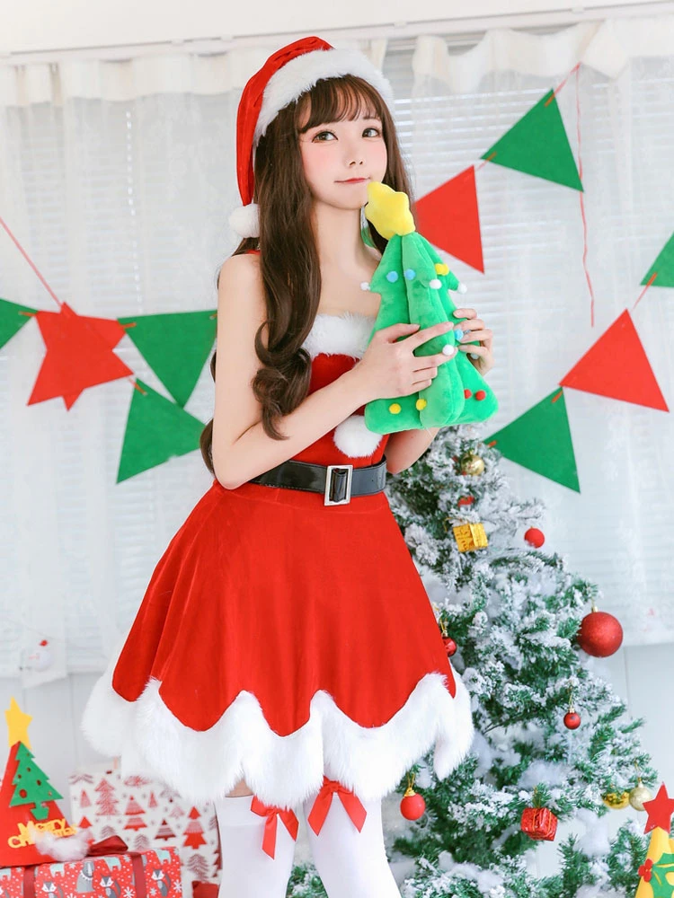 Women’s Christmas Tunic Coffee Brown Hat Cloak Dress Polyester Christmas Holidays Costumes