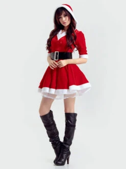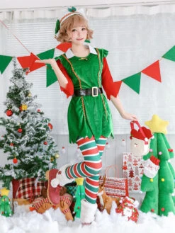 Christmas Tree Costume Women Green Dresses Outfit Pantyhose Sash Hat Set 4 Piece Halloween