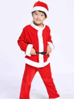 Unisex Christmas Santa Costume Set Red Polyester Fiber Color Block Christmas Holidays Costumes