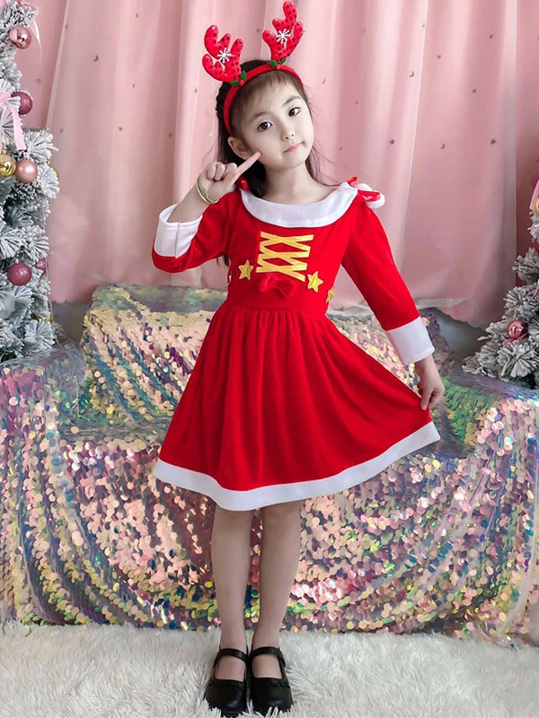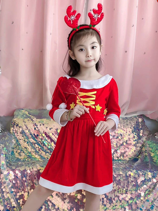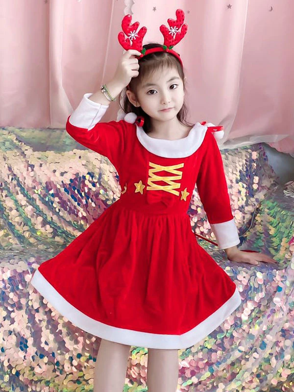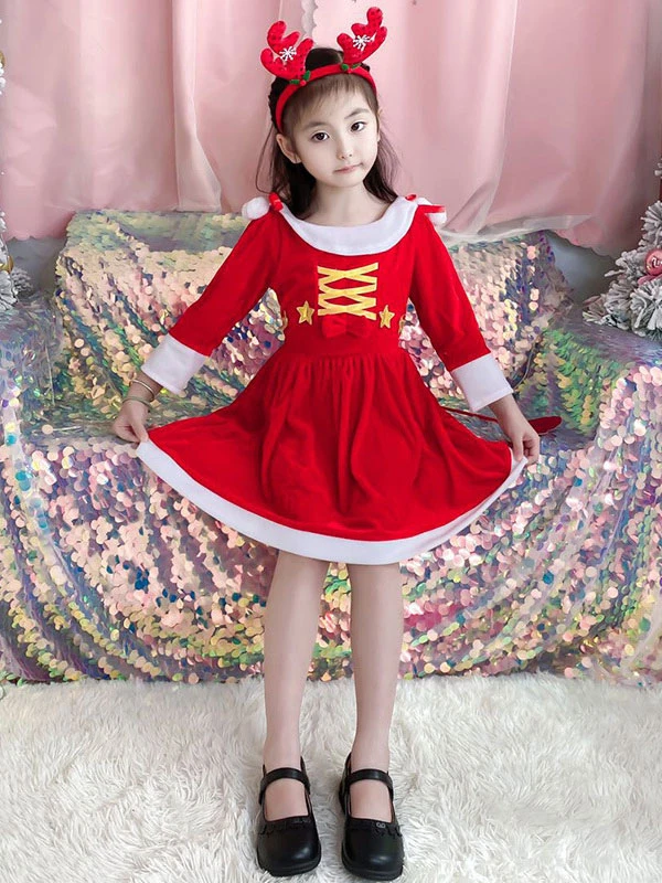 Women’s Christmas Dress White Velour Polyester Christmas Pattern Christmas Holidays Costumes