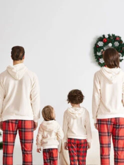 Family Christmas Pajamas Polyester Plaid Pattern Eric White Pants Top 2-Piece Set