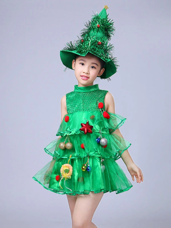 Christmas Green Santa Tree Costume Polyester Fiber Hat Dress Christmas Holidays Costumes Full Set
