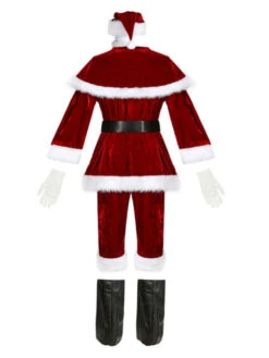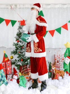Christmas Santa Clause Costume Men Top Pants Beard Hat Cape Sash Shoe Cover Outfit 7 Piece Halloween