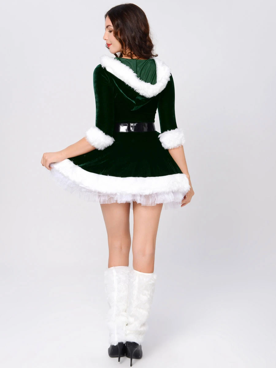 Women’s Christmas Dress White Velour Polyester Christmas Pattern Christmas Holidays Costumes