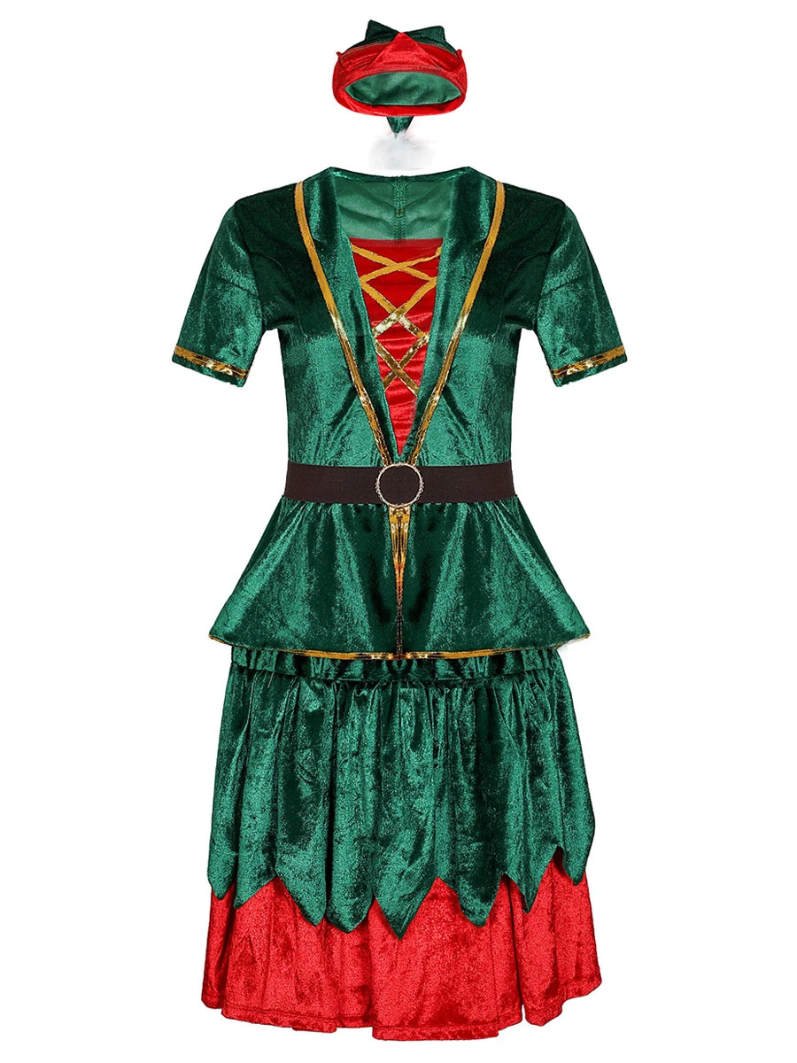 Women’s Christmas Tunic Coffee Brown Hat Cloak Dress Polyester Christmas Holidays Costumes