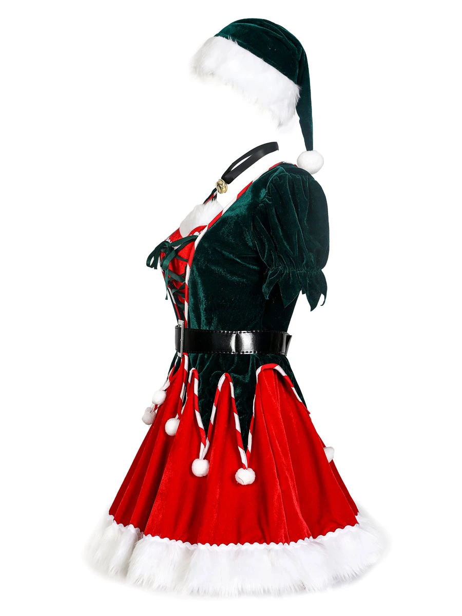 Women’s Christmas Tunic Coffee Brown Hat Cloak Dress Polyester Christmas Holidays Costumes